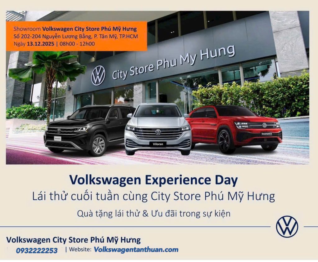 Volkswagen City Store Phú Mỹ Hưng trân trọng kính mời Quý khách tham dự Volkswagen Experience Day – sự kiện lái thử đặc biệt, nơi bạn được khám phá trọn vẹn cảm giác lái và công nghệ Đức trên các mẫu xe nổi bật: Viloran – Teramont – Teramont X.