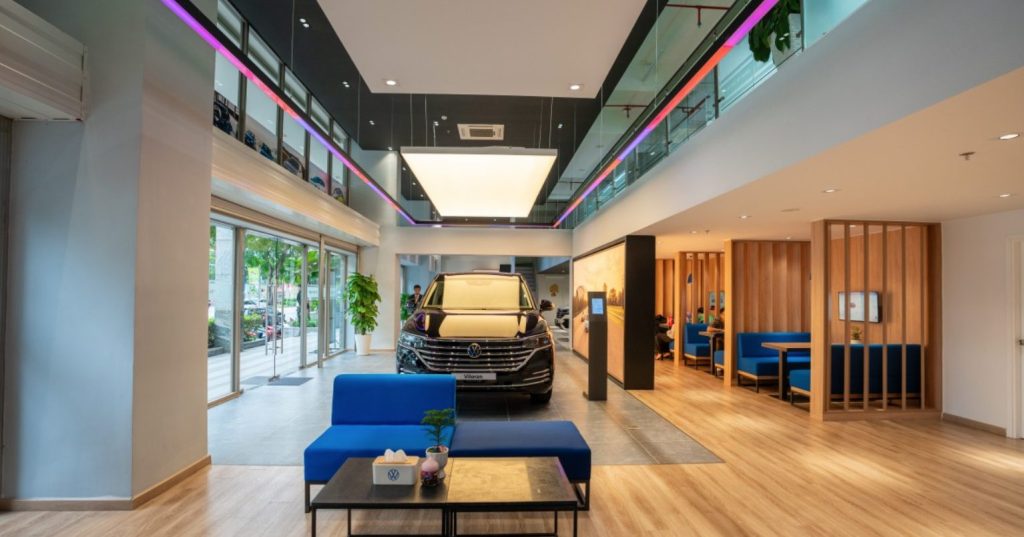Showroom Volkswagen Quận 7 được thiết kế theo tiêu chuẩn toàn cầu của Volkswagen AG, mang đến trải nghiệm mua xe – lái thử – bảo dưỡng chuẩn Đức.